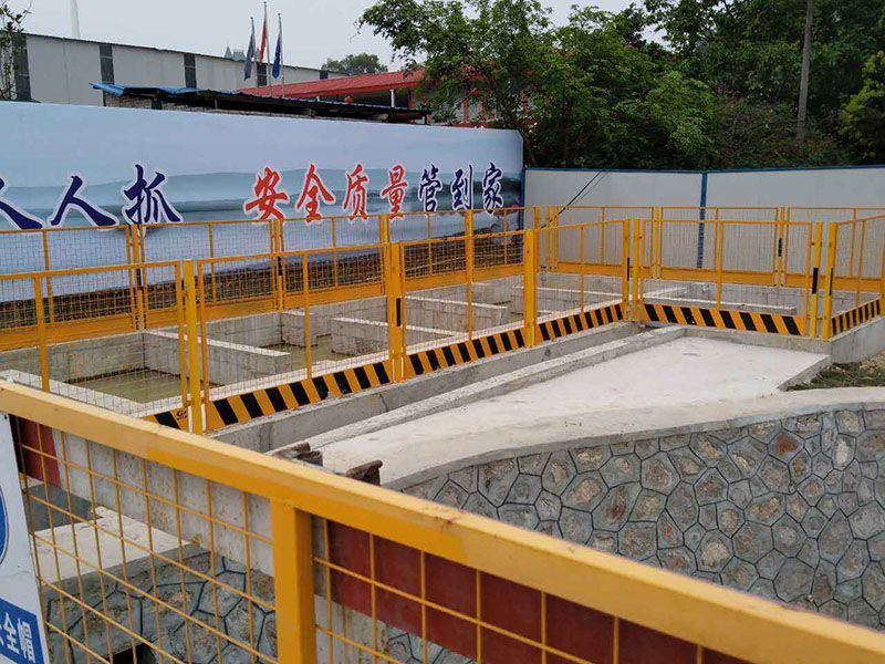 開挖深度超過2m的基坑周邊必須安裝防護欄桿?;优R邊防護網種類很多,一般使用黑黃色和紅白色較多,根據使用需要可在防護欄噴涂:禁止攀爬、注意安全、請勿靠近、嚴禁拋物,禁止跨越等字樣,警示施工人員注意安全施工。