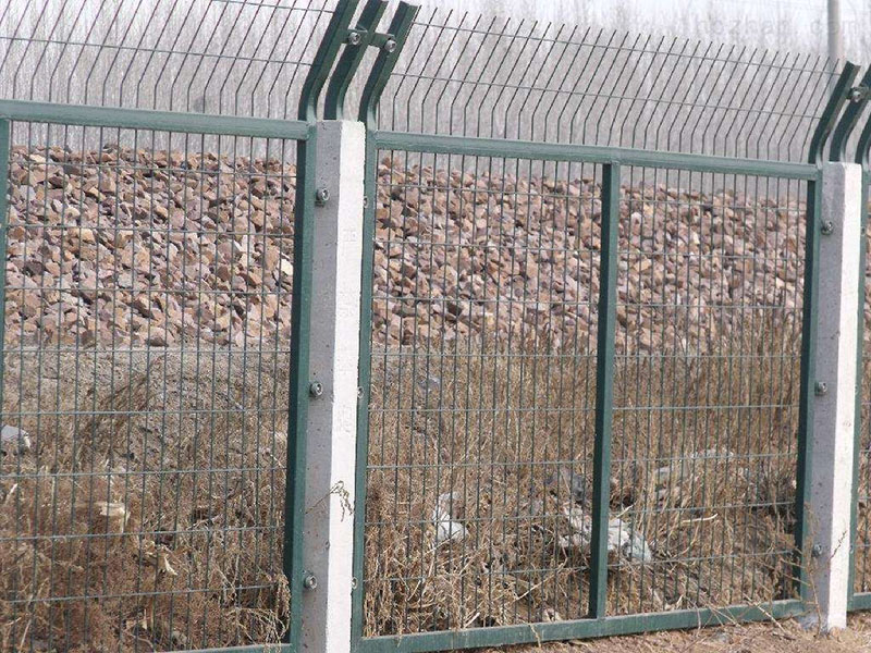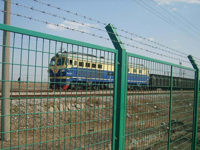 產(chǎn)品材質(zhì)及工藝:內(nèi)部采用HPB300冷拔低碳鋼絲與Q235矩管邊框;焊接完畢后,表面采用整體熱鍍鋅后浸塑處理,浸塑粉末一般采用墨綠、表面光滑、平整、日久抗腐蝕、抗紫外線的特性。鐵路防護(hù)柵欄是鐵路的安全設(shè)施安裝工程,主要應(yīng)用在鐵路軌道兩側(cè),用來防止來往的行人接近軌道及來往的火車,以保證行人的人身安全。因此,鐵路防護(hù)柵欄無論在技術(shù)上還是在質(zhì)量上都比其他隔離柵要求更加嚴(yán)格。鐵路防護(hù)柵欄采用立柱混凝土澆筑件,工程造價低,強(qiáng)度高,整體穩(wěn)定性好,適合大面積采用。