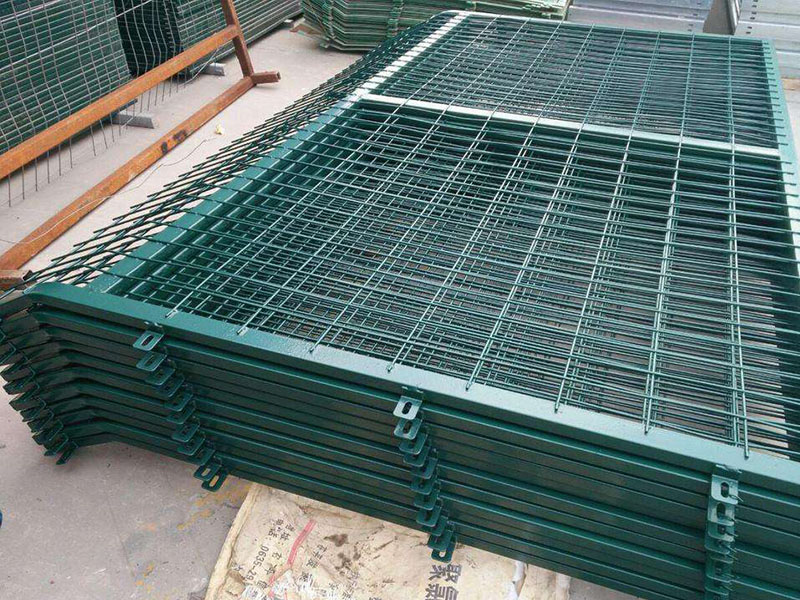 通線2012-8001防護柵欄分為兩種。一種是用在鐵路通線橋下的隔離網是跟根據鐵路橋下防護柵欄2012(8002)標準來生產制作的,鐵路防護柵欄的金屬網片規格為2760*1700mm、絲徑為4.0mm、網孔為75*150mm、邊框為Q235材質的30*50*2.0mm矩管,然后加工成型后整體熱鍍鋅浸塑進行防腐處理。第二種是用在鐵路通線倆側的隔離網是根據鐵路線路防護柵欄通線(2012)8001標準來生產制作的,鐵路防護柵欄的金屬網片規格為2760*1797mm、絲徑為4.0mm、網孔為75*150mm、邊框為Q235材質的30*50*2.0mm矩管帶有30度折彎,然后加工成型后整體熱鍍鋅浸塑進行防腐處理。